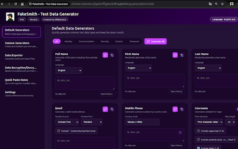 FakeSmith'in veri ihraç etme özelliği, kullanıcıların varsayılan ve özel oluşturucuları birleştirerek veri setleri oluşturmalarına olanak tanır. Bir tıklama ile JSON, CSV veya Markdown formatında verileri dışa aktarabilirler. Sık kullanılan dizeleri veya test parçacıklarını depolamak için hızlı yapıştır notları sunar. Kullanıcı arayüzü çok dilli destek sunarken, veri güvenliği önlemleri ile kullanıcıların verilerinin güvenliğini sağlar.